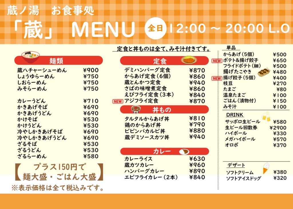 | 平日・土日祝 | 12:00~ | 全メニュー販売 |